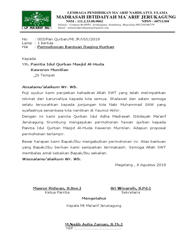 20 Contoh Surat Permintaan Hewan Kurban from i2.wp.com Apr 23, 2019 · contoh sambutan ketua panitia di setiap acara yang sedang kalian adakan pasti ada sambutan sambutannya begitu juga dengan sambutan ketua panitia yang menyelenggarakan jika anda baru pertama kali mengadakan acara dan harus mengisi sambutan sebagai ketua panitia tentu stres kecil nerves gugup dan lain sebagainya akan bercampur aduk. Informasi yang diminta belum tersedia, atau informasi yang rahasia sehingga harus mendapat ijin dan. Permohonan disampaikan secara tidak langsung, baik melalui surat atau media elektronik; Pengumuman peradi mengadakan pemotongan hewan qurban. We would like to show you a description here but the site won't allow us. Download buku belajar membaca anak sd kelas 1.download buku pelajaran sd kelas 1 pdf dan apk file download buku pelajaran sd kelas 1 pdf dan apk ini merupakan berkas yang kami sediakan untuk para pengajar terutama guru guna melengkapi dokumentasi atau sebuah bahan yang bisa dijadikan sebagai referensi dalam. May 16, 2012 · nama ebook: Informasi yang diminta bervolume besar;